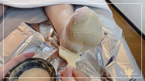 足裏全体に酵素を塗布しパックしていきます。
