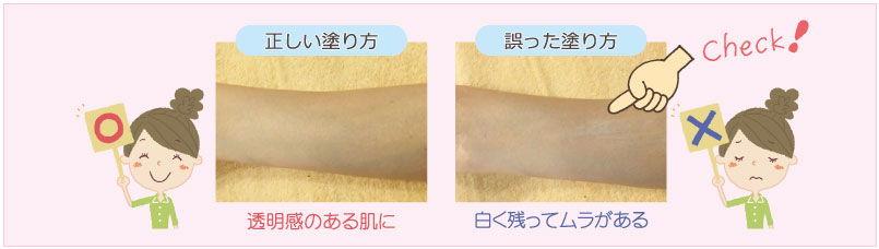 塗りムラは日焼けムラになり、必ず後から後悔します。