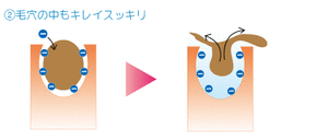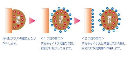 マイナスイオンの力で肌に残ったプラスの電位を剥離します。