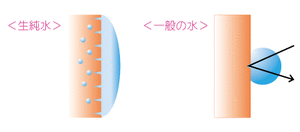 一般の水に比べ、表面張力が少ないので玉にならずにどんどん入っていきます